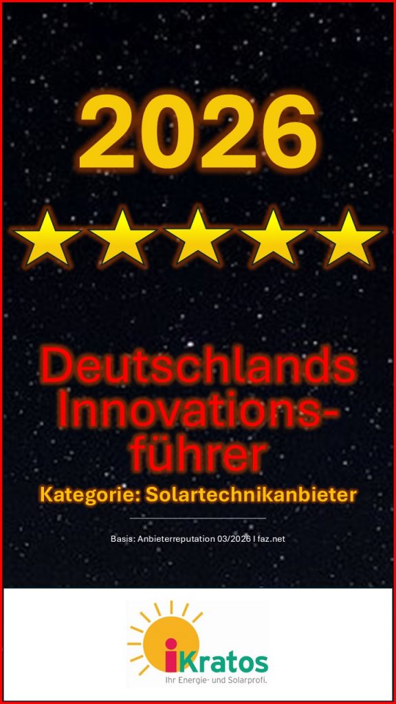 Die iKratos Solar- und Energietechnik GmbH aus Weißenohe setzt ihren Erfolgskurs fort und wurde offiziell mit dem renommierten Siegel „Deutschlands Innovationsführer 2026“ ausgezeichnet. Die Auszeichnung unterstreicht die führende Rolle von iKratos bei der Gestaltung der Energiewende durch intelligente, zukunftssichere Technologien.