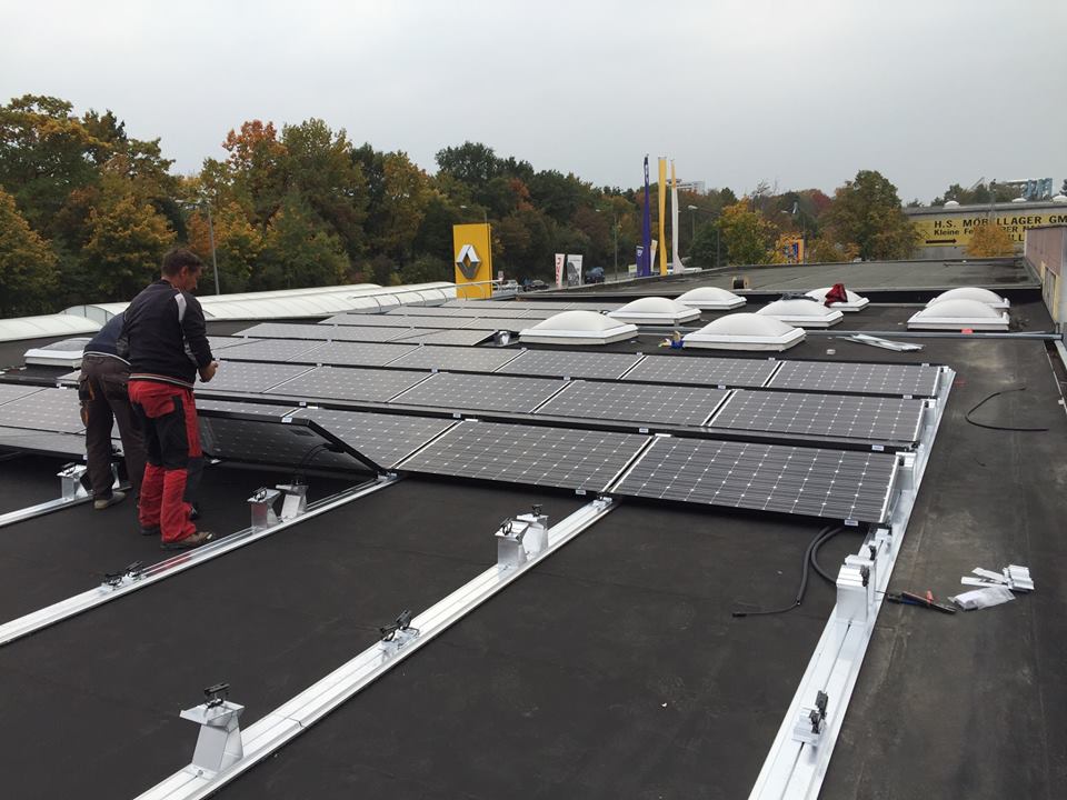 Verkauf für das Elektrofahrzeug ist sehr erfolgreich. Aus diesem Grunde hat man sich entschlossen auch eine umweltfreundliche Photovoltaikanlage mit rund 30 KW (entspricht rund 45 Pferdestärken) auf das Flachdach montieren zu lassen.