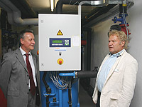 Mit diesem Modellprojekt werden die Büroräume für die 50 Mitarbeiter mit einem neuartigen Kühlsystem (eine Absorptionskälteanlage wandelt Wärme in Kälte um) angenehm temperiert – “ohne die trockene Luft herkömmlicher Klimaanlagen, unangenehme Zugluft und all die anderen gesundheitlichen Nachteile”, so iba-Vorstandsvorsitzender Horst Anhaus. Wenn im Frühjahr oder Winter nicht gekühlt werden muss, wird die gewonnene Solarenergie für Heizung und Warmwasserbereitung und für das benachbarte Kurbad zur Verfügung gestellt In Fürth reichen nun – stark vereinfacht ausgedrückt -100 Quadratmeter Flachkollektoren auf dem Dach (52 KW Leistung), Warm- und Kaltwasserspeicher, Pufferschichtspeicher und als Herzstück die Absorptionskälteanlage aus, um 1000 Quadratmeter Bürofläche je nach Bedarf zu kühlen oder zu heizen. Die Gesamtkosten beziffert Projektleiter Henry Regn auf 450 000 Euro, 120 000 Euro fließen aus dem Fördergeldprogramm “Solarthermie2000plus” vom Bundesumweltministerium. Zum Vergleich: Eine herkömmliche Klimaanlage hätte rund 132 000 Euro gekostet. Regn macht jedoch eine interessante Gegenrechnung auf: Stellt man den Mehrkosten die Anschaffungs- und vorsichtig prognostizierten Energiekosten einer herkömmlichen Klimaanlage gegenüber, so rentiert sich die Anlage bereits 2022, also in 15 Jahren – und das bei einem Modellprojekt. Neben all den Vorteilen ist für iba-Vorstand Anhaus noch ein anderer Aspekt wichtig: Er hofft, mit Hilfe der neuen Technologie branchenweit bekannter zu werden und andere Märkte für das Unternehmen zu erschließen – beispielsweise durch spezielle Hard- und Softwareprodukte, die speziell auf die Einzelkomponenten der solarautarken Klimaanlage abgestimmt sind. Durch eine iba-eigene Steuerung können nicht nur die Messdaten leichter ausgewertet werden, auch eine Fernabfrage wird möglich – beispielsweise von Universitäten wie der TU Ilmenau, die die messtechnische Begleitforschung übernimmt. Oberbürgermeister Dr. Thomas Jung zeigte sich begeistert von der innovativen Idee: “Für die Solarstadt Fürth ist ihre Firma eine ungeheure Bereicherung”, sagte er und hofft auf viele Abnehmer der Anlage. Die Ausführung der Arbeiten wurden durch die Firma iKratos Solar Energietechnik GmbH aus Igensdorf durchgeführt. “Wenn man bedenkt, dass in Südeuropa in fast allen Büros und Wohnungen Klimaanlagen laufen, dann sieht man, welch enormes Potenzial in dem Modellprojekt steckt.” |