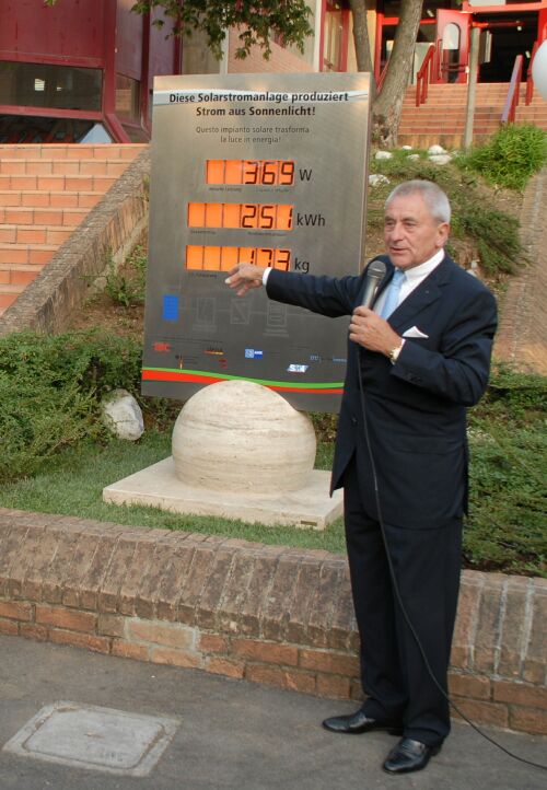 Die Photovoltaik-Anlage auf der Deutschen Schule in Rom wurde jetzt offiziell eingeweiht. Gemeinsam nahmen Schulleiter Ulrich Berner, der Deutsche Botschafter Michael H. Gerdts, Berthold Breid von der Deutschen Energieagentur (dena) sowie der Vorstand von IBC SOLAR AG, Dipl. Physiker Udo Möhrstedt, die Einweihung des Projekts vor.