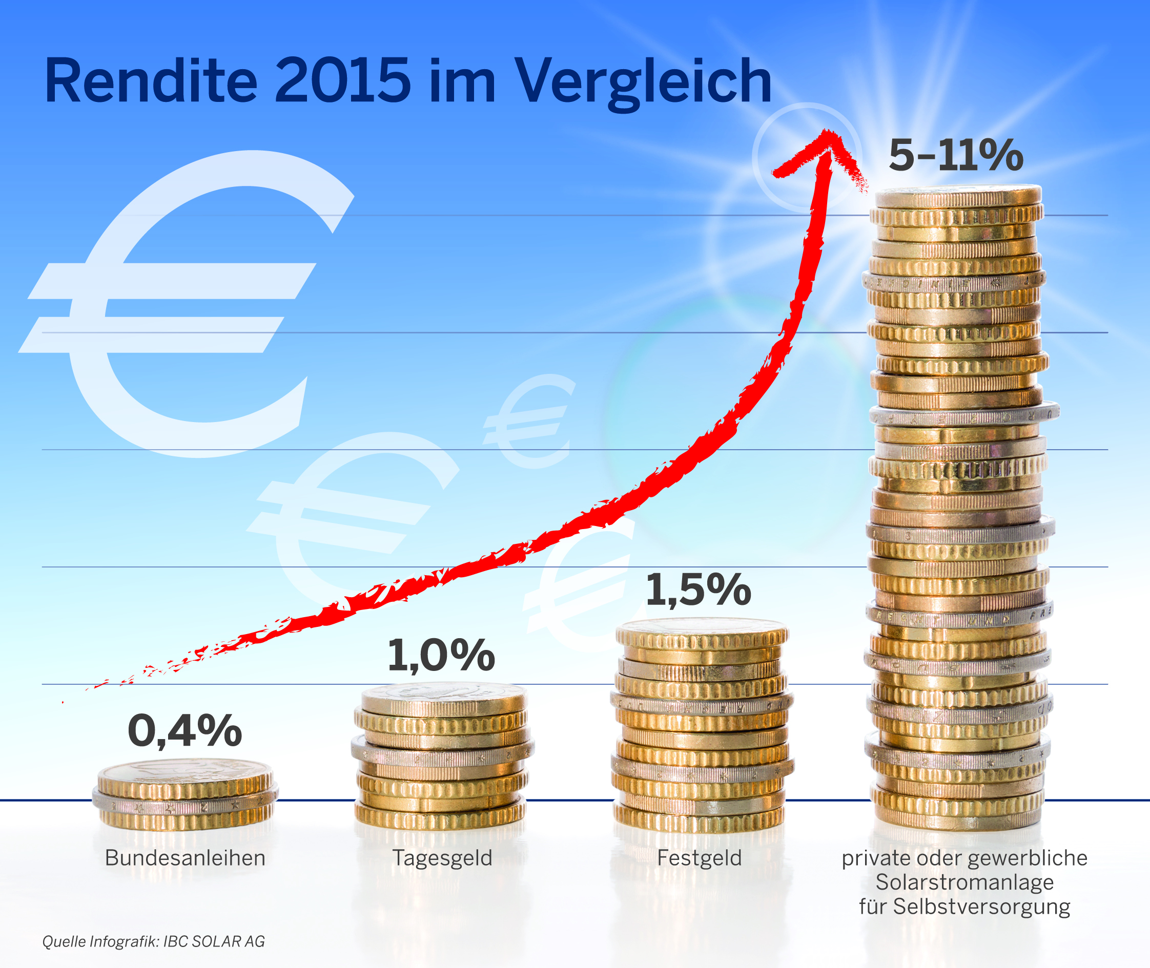 Bis zu 50 Prozent der laufenden Stromkosten lassen sich durch eine Photovoltaikanlage einsparen. Dazu trägt insbesondere der Eigenverbrauch von Sonnenstrom bei: Durchschnittlich 28 Cent pro Kilowattstunde zahlt man derzeit bei den öffentlichen Versorgern. Der Strom vom eigenen Dach hingegen kostet inzwischen unter 15 Cent pro Kilowattstunde. Geschulte Installateure erkennen dieses Einsparpotential, helfen die passende Photovoltaiklösung zu wählen und so die Kosten zu halbieren. Einen Überblick über alle regionalen „CHECK & CUT“ Aktionen finden Kunden unter www.ibc-solar.de/spar über den „SOLAR & SPAR“ Kalender.