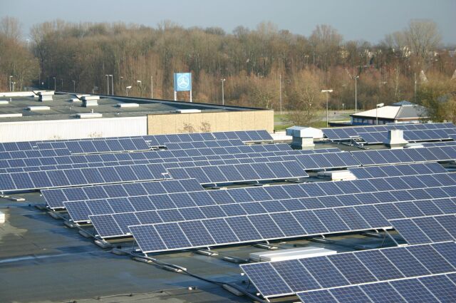 Mit einer Solarstrom-Anlage wurden die Dächer der DaimlerCh-rysler AG, Werk Gaggenau zum “Solarpark Rastatt GmbH & Co. KG”. Auf dem neuen Energiefeld wird nun Strom geerntet. Bau-beginn war der 13. November 2006, schon zum Jahreswechsel ging die Photovoltaik-Anlage ans Netz. Das Sonnen-Kraftwerk umfasst zwei Dachanlagen und erzeugt pro Jahr mit einer Modulfläche von exakt 3.950 Quadratmetern im Durchschnitt 490.000 Kilowattstunden (kWh) Strom. Die Module bedecken dabei mit einer Dachfläche von 21.600 Quadratmetern in etwa die Fläche von vier Fußballfeldern, sie erzeugen Strom für ca. 125 durchschnittliche Einfamilienhäuser.