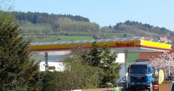Unten Tanken oben Strom erzeugen. Die Zukunft hat begonnen, zumindest in Igensdorf an der Bundesstrasse, B2 Bayreuth Nürnberg. Tankstellenbesitzer Wölfel trug sich seit Jahren mit dem Gedanken nicht nur Benzin und Diesel zu verkaufen, sondern auch eigenen Strom zu erzeugen. Vor 2 Jahren wurde es dann mit iKratos in die Tat umgesetzt. Jetzt speisen über 80 Module Strom in den Shop, Waschhalle und Werkstatt der Shell Tankstelle in Igensdorf. Die Stromkosten selbst bestimmen und einen großen Teil des Stromes selbst zu machen war die bis heute erfolgreichste Geschichte von der Tankstelle mit der Solaranlage.