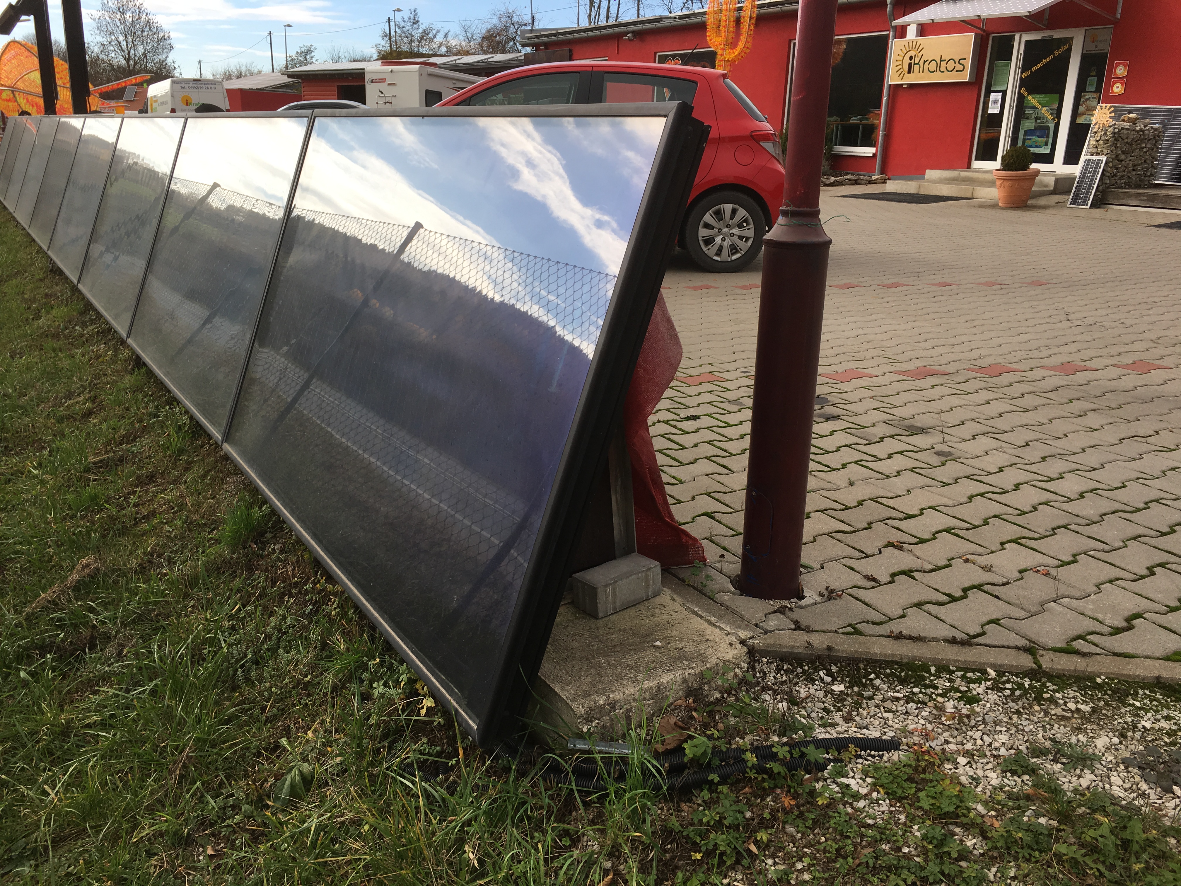 Mit einem Energiezaun oder einem Solarkollektorfeld (Solarzaun), der mit dem Erdboden verbunden ist, kann man so fast ohne großen Grundstücksflächenverlust dieselbe Wärmemenge erzeugen. Ein Energiezaun bietet zudem einen Sichtschutz zum Nachbargrundstück, der grün bepflanzt werden kann. Während der Sonnenzeit lenkt ein Umschaltventil die Sonnenwärme in den Boden, in Heizzeiten wird diese Wärme dann mit der hocheffizienten Wärmepumpe als Heizwärme genutzt.